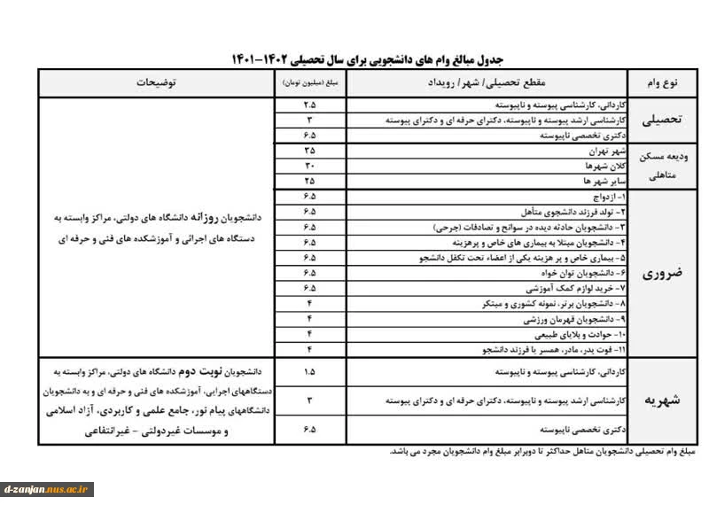 امتیاز دهید : جدول مبالغ وام های وزارت علوم در نیمسال اول ۱۴۰۲ - ۱۴۰۱ 2 چهارشنبه 27 مهر 1401 ساعت 13:13